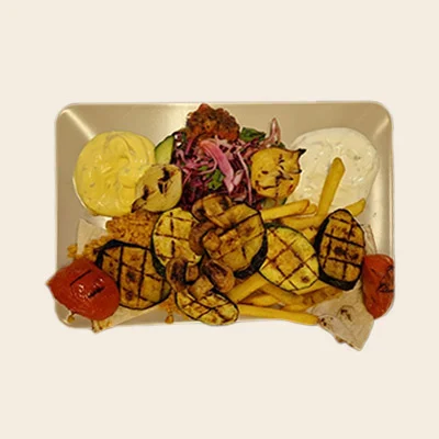 Grillad zucchini, aubergine, gul lök, tomat & champinjoner