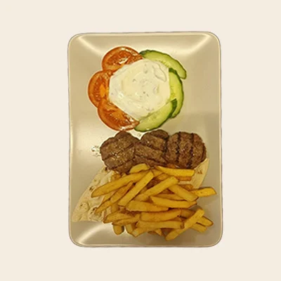 Nötfärsbiffar med tzatziki, tomat, gurka & klyftpotatis